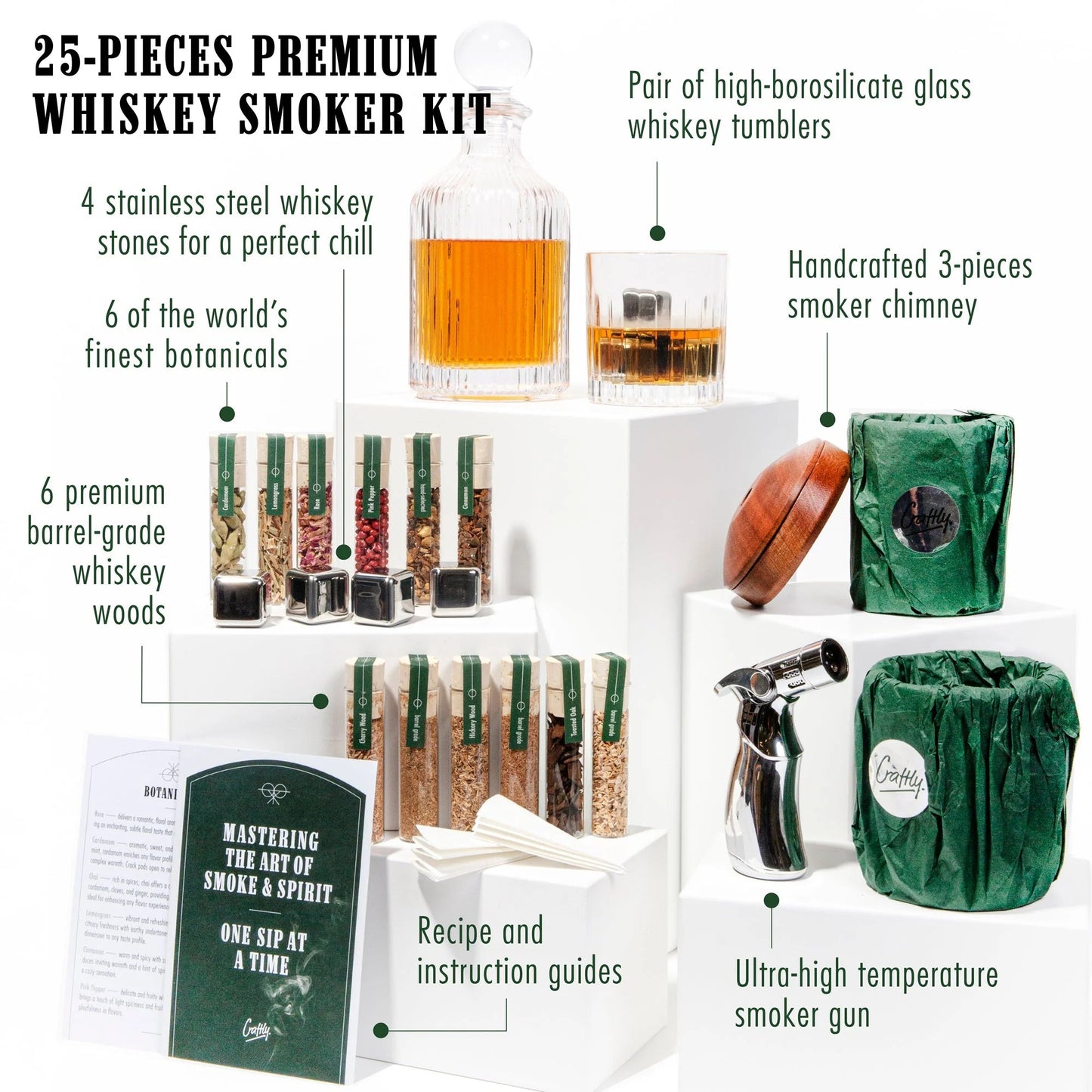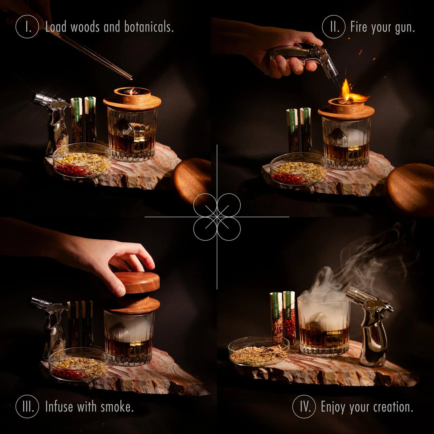- Instruction card with easy-to-follow steps and details about the botanicals and wood chips to enhance your whiskey smoking experience