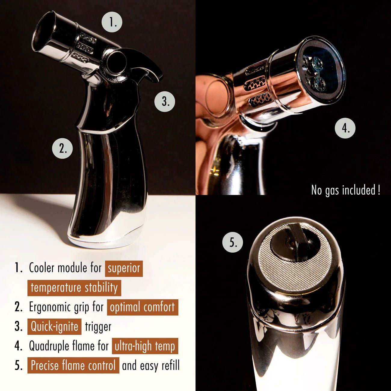 Note: The torch provided in this kit is intended to be filled with butane gas by the user. The product is shipped without any gas included for safety.